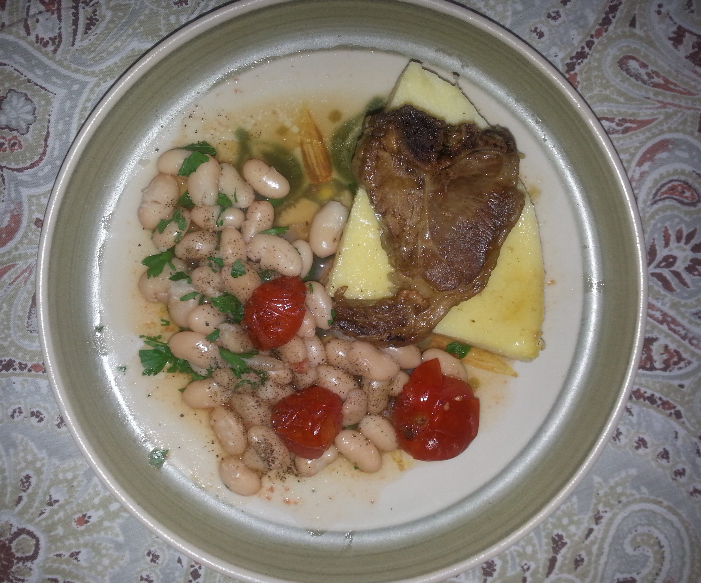 Top with a lamb chop and some of the cooking juice from the lamb.