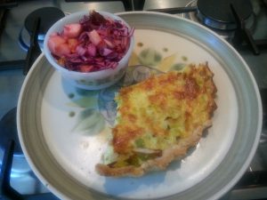 Quiche with red cabbage salad